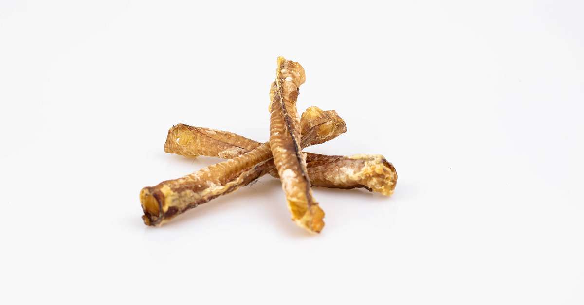 Ein Hundesnack für langanhaltendes Kauvergnügen - genau das wünschen sich unsere Vierbeiner, weshalb sie sich über die getrocknete Luftröhre vom Lamm ganz besonders freuen. Die knackige Köstlichkeit liefert Fleisch, Knorpel und reichlich Nährstoffe.An der schmackhaften Luftröhre dürfen bereits Hunde im Welpenalter knabbern und damit ihr Gebiss trainieren. Sie eignet sich zudem für ausgewachsene Vierbeiner, Oldies und übergewichtige Hunde.