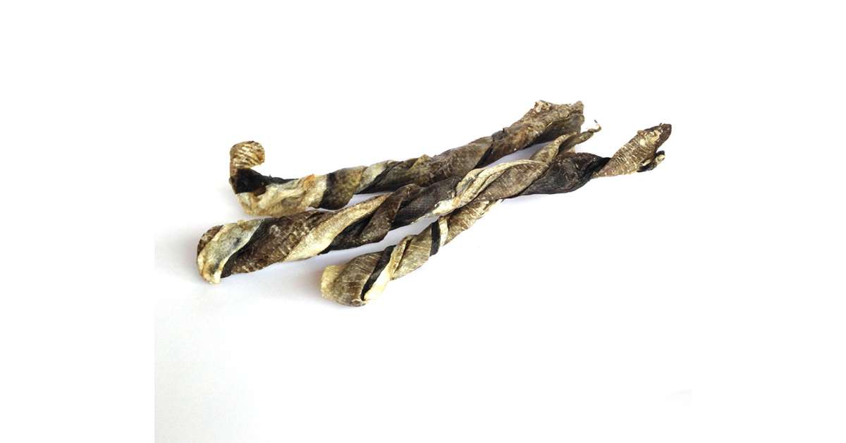 Unsere getrockneten Fischstangen sind zu 100% aus Fischhaut (weisser Fisch), per Hand gerollt und auf natürliche Art getrocknet. Ein toller langanhaltender und schmackhafter Leckerbissen! Aus ökologisch gehaltenen Fischbeständen im englischen Fischereihafen von Grimsby verarbeitet. Keine Zusatz-, Konservierungs- oder Aromastoffe. Sie haben nicht nur wenig Fett sondern sind auch voll gepackt mit leicht verdaulichen Proteinen und außerdem reich an lebensnotwendigen Omega-3-Fettsäuren. Diese sind für die Vitalität und das Wohlbefinden Ihres Hundes sehr wichtig. Unsere natürliche, getrockneten Fischstangen funktionieren wie eine große Zahnbürste. Sie können helfen Plaque und Zahnstein zu entfernen, während Ihr Hund daran genüsslich nagt. Da dieses Produkt ein Naturprodukt ist, können Farbe und Größe leicht unterschiedlich sein. Die Stangen sind etwa 18 bis 20 cm lang. Da sie weder Weizen, noch Gluten enthalten sind sie auch für Allergiker geeignet.